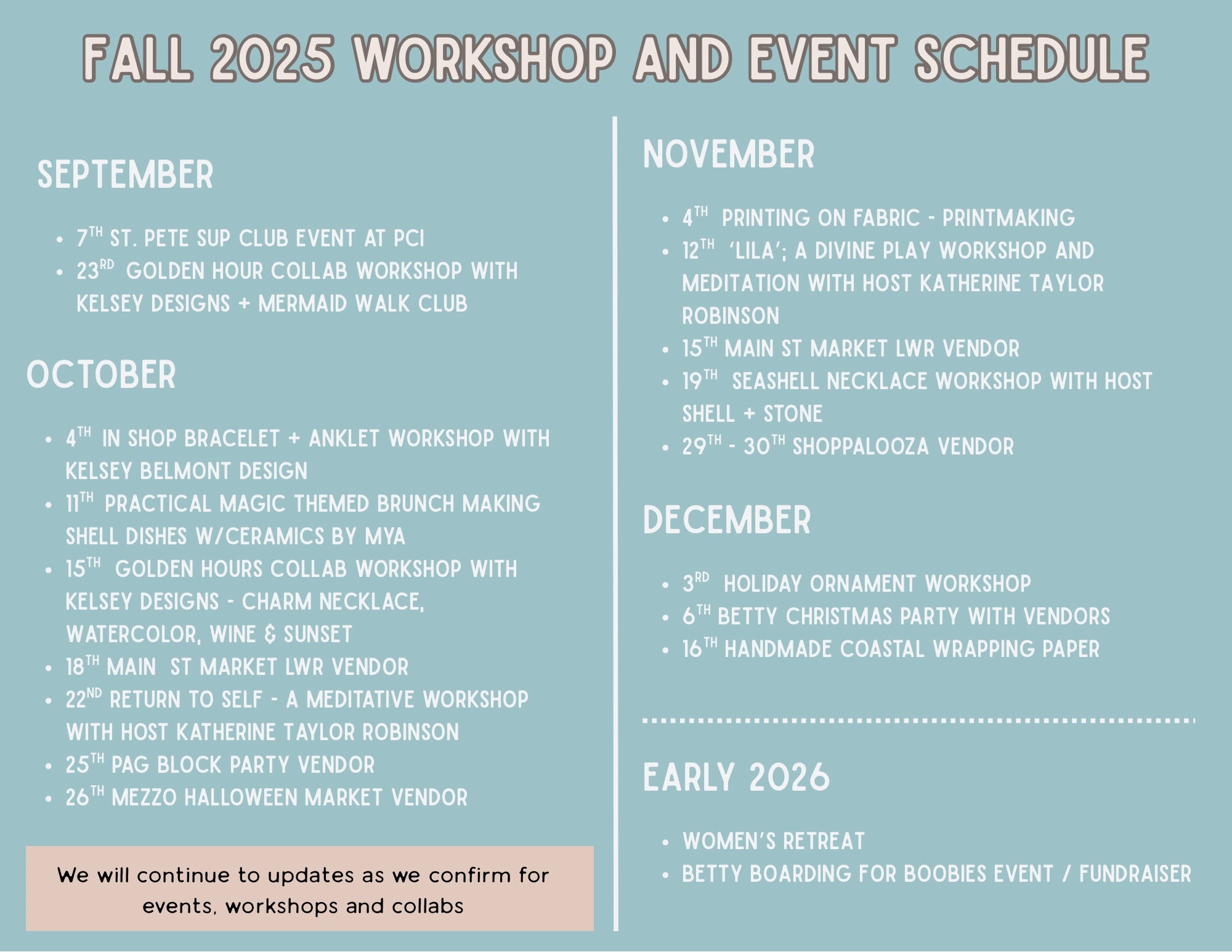 Workshops + Events