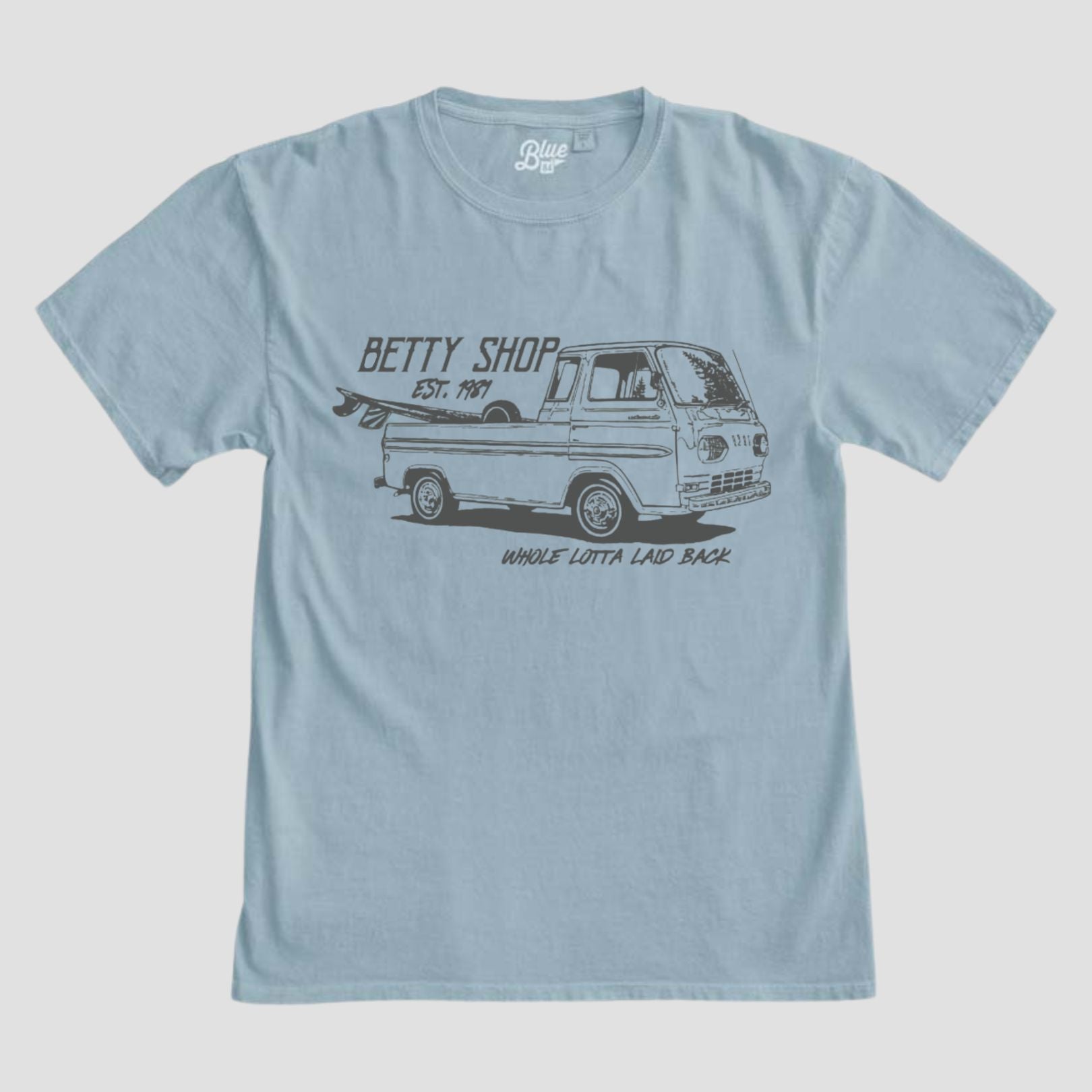 This is our lightweight unisex Tee in a vintage Denim blue fade wash.