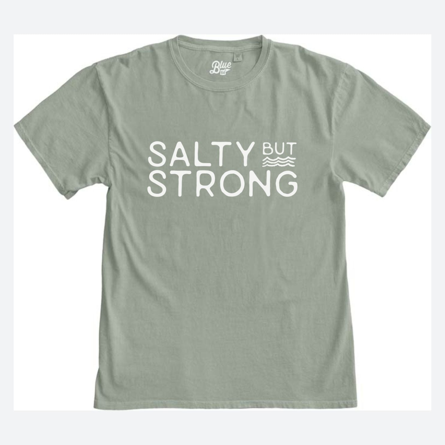 Our Salty But Strong Tee was a hurricane fundraiser shirt that I came up with two days after my house was destroyed and business lost. I designed it in the bathroom of a hotel room and quickly started raising money for our family and others by selling online. We owe this shirt our lives because without it, we wouldn’t be in a house now.